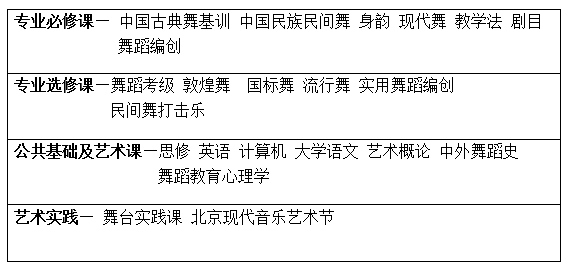 2、培养具备开发和拓展中国舞的创新能力与多维视角,拥有适用于市场需求的专业技能,对民间舞和古典舞融汇贯通,熟练运用中国舞元素进行艺术表达与艺术创作的编创型人才。