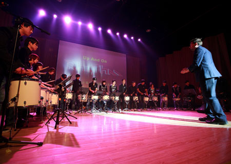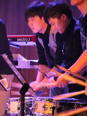 爵士乐学院“现代打击乐团”于2010年正式挂牌成立,是中国高等院校里第一个现代打击乐团,由我院外教Zac Coutrney担任指挥。在这个乐团里,学生将充分的享受打击乐带给你的快乐及合作的乐趣。