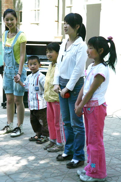 07级的林娜同学和孩子们一起唱歌