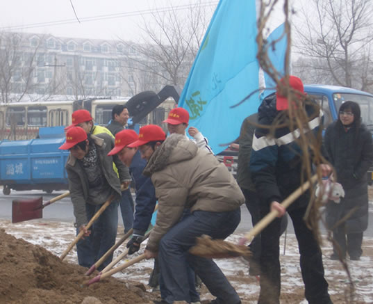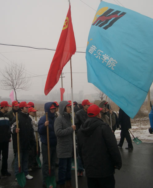 2006年2月28日清早,天空飘洒着雪花。早春的北京寒气袭人,街道还未完全苏醒。来自我院青年志愿者协会的46名同学在院青协老师的带领下,已在学校门口整装待发。他们头戴印有“志愿通州”的小红帽,手拿铁锹,还高举着团旗和校旗——原来,他们正准备去参加首都第一个“迎奥运环境改善日”活动。