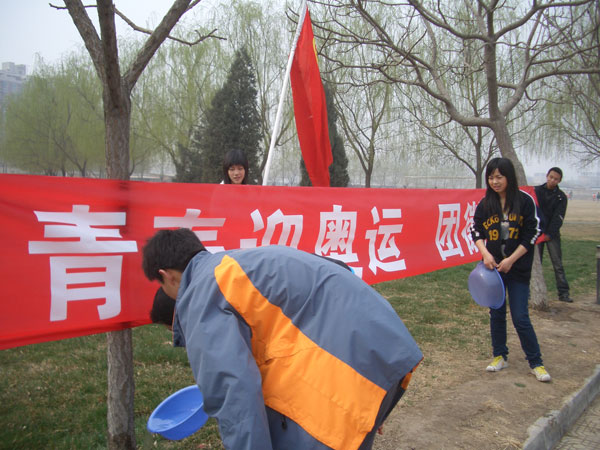 4月1日是首都第二十二个植树日,院团委在西院组织学院青年志愿者参加了“多一棵绿树,多一份温馨”奥运树浇水保养活动