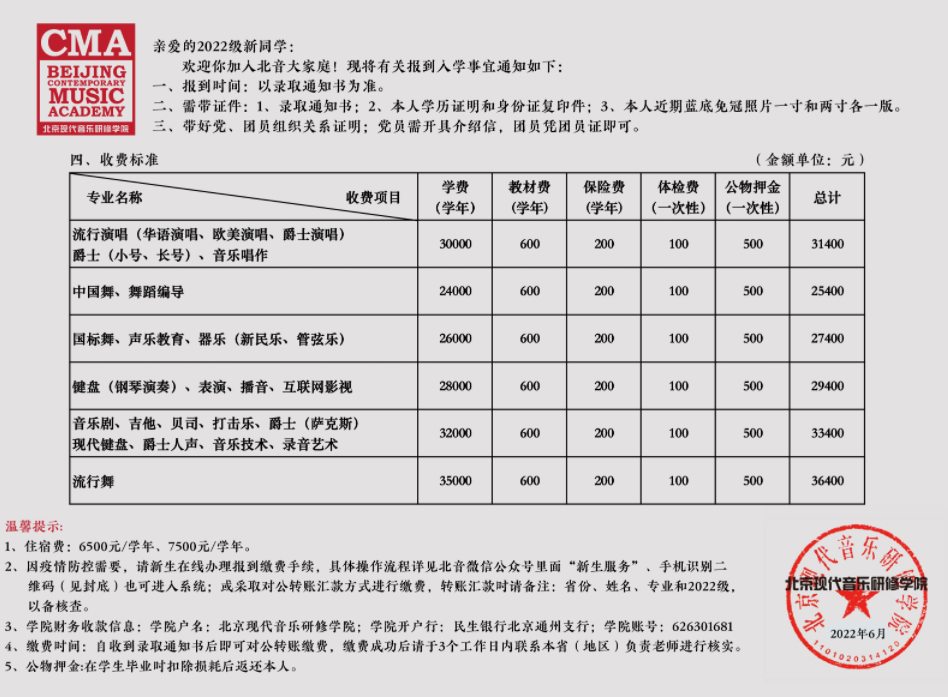 北京现代音乐研修学院2022年艺术类专业考试通知