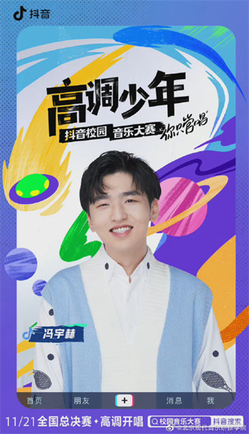 《高调少年-抖音校园音乐大赛》是由抖音主办的全国性大型高校音乐赛事。赛事聚焦校园歌手音乐梦想,联动抖音平台的音乐生态和资源,全方位扶持校园音乐人。比赛覆盖全国高校大学生群体,采取晋级制的方式,在全国设置六大赛区,通过线上直播+线下公演的比赛形式,选拔校园优质歌手。在历经报名、区域海选赛、区域晋级赛、区域半决赛后最后落地全国总决赛,选拔出校园音乐的“创作鬼才”及“实力唱将”,并为获胜选手提供音乐公司签约机会、抖音音乐人官方扶持等超值激励。这也是抖音首档全国高校参与、全公开制的大型高校音乐赛事。