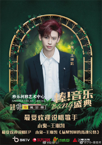 近日,第28届《东方风云榜》音乐盛典圆满落幕,北京现代音乐研修学院毕业生小鬼-王琳凯斩获“最受欢迎说唱歌手”以及“最受欢迎说唱EP”(《从M到W的高速公路》)两大奖项,北音附中(北京市现代音乐学校)毕业生刘雨昕斩获“年度人气歌手”、“网络影响力女歌手”、“微博人气歌手”三个个人奖项,同时她也代表THE9领取了“最受欢迎组合”的奖项。小鬼-王琳凯和刘雨昕两人还分别带来了朋克版《别叫我达芬奇》和《Of Course》的精彩舞台。