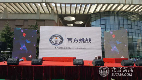 2016年6月16日,万众瞩目的北京现代音乐研修学院千人摇滚乐队将在北音姊妹院校——天津体育学院运动与文化艺术学院挑战“世界最大的摇滚乐队”吉尼斯世界纪录。届时,知名乐队、摇滚达人等千名摇滚音乐人将奉上一场精彩绝伦的音乐盛宴,引爆你的听觉神经!吉尼斯官方认证官将到现场对此次挑战活动进行全程公证。