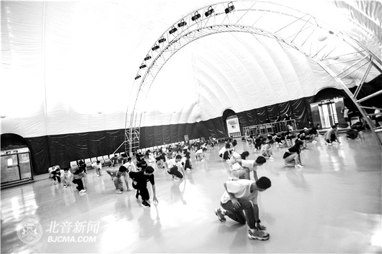 今年6月,在学院的气膜馆里,我们进行了第一次群体排练,每天早上8:30开始到晚上9:00结束,身体的疲惫令人倒床就睡,中午吃饭都会打瞌睡。天很热,热得风都吹着热气,室内更是闷得像在温水煮青蛙,每天从寝室到排练厅,短短的距离都要带上冰袖擦上防晒,偶然被太阳晒到的皮肤都会火辣辣的烫。
