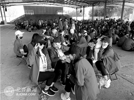 回京后,排练继续,不停地训练动作、整齐度、排队形,我们又回到了排练的日常。随后又从学校的气膜馆转到了昌平军事基地后,和北体大、国戏附、北戏附、莱州武校等学院的同学们一起排练。基地的训练场,比学校的气膜馆面基要大数十倍,点位也比学校的更远些,也因为高强度的练习,让很多人苦不堪言。而跟我们一同训练莱州武校的孩子们,最小的差不多11岁,最大的也只有17岁,可每个人的皮肤都是黝黑色的,教练对他们极其严厉,很多时候,我们排练完了,他们还要继续排练,虽然辛苦,可每个人的脸上依旧带着斗志。“我们作为北音的大哥哥大姐姐不能输!”这股劲儿总是在疲惫懈怠的时候让我们重新奋起,坚持下去。在基地每天训练几遍下来,整个人就只想趴在地上不动,以至于最后,排练中的乐趣,就变成了用餐时间,食堂的饭菜营养搭配的很好,有鱼有虾有肉回味无穷。