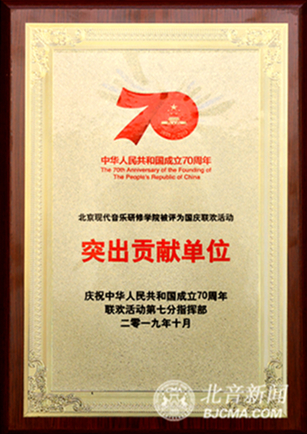 北音师生历经近四个月的艰苦排练、合练、彩排,克服了大热天、大强度、大跨度、大合作等种种不适因素,在10月1日,以饱满的热情、最佳的状态,向党和国家领导人及全国人民精彩呈现,圆满完成了国庆70周年演出活动任务。北京现代音乐研修学院因此荣获联欢活动指挥部颁发的“突出贡献单位”奖牌,李罡院长被授予“先进个人”荣誉证书。