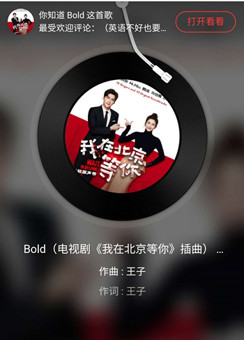 近日,是由许肇任、鄢钷、解航、陈宥良执导,李易峰、江疏影、蒋梦婕、胡宇威领衔主演的都市爱情创业剧《我在北京等你》在江苏卫视、浙江卫视、优酷视频、腾讯视频同步热播,剧中插曲《Bold》已于日前上线,该歌曲由北京现代音乐研修学院音乐科技学院2014届毕业生王子作词作曲编曲并担任制作人。