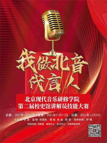 北京现代音乐研修学院第二届“我做北音代言人”校史馆解说员大赛决赛将于12月8日15:30在学院校史馆举行。