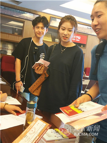 清晨6点,志愿者们随着学校班车前往北京各站迎接新生的到来。8时,迎新工作人员全部各就各位,随时待命。随着学院派往北京站、北京西站、北京南站的接站专车陆续返回学院,各二级院咨询处一字排开,报到各环节有序工作。在集中报道大厅,纯净水、空调、风扇、志愿者微笑服务,今年的迎新工作,延续了往年“以人为本,热情周到,简化手续,提高效率”的主旨精神,全体迎新工作人员为学生提供最高级别的便利和服务,”一站式“人性化流程、身份证刷证信息共享、电子支付、志愿者引导等各项措施有效地减少了新生及家长排长队的现象,赢得了新生及家长的肯定和赞赏。