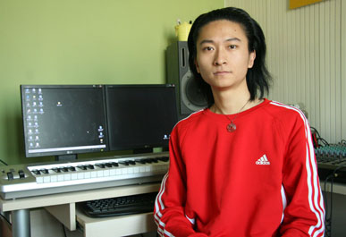 和李凯稠的见面让我很意外,网站上的照片很老成,电话约访的时候他的身音沉稳而低旷,所以印象中是个很成熟的老师形象。采访的地点在他的个人工作室,也是他的家,开门却看见一个留着齐肩长发、一身红色运动服的年轻帅气的小子,不由得一愣,直到他热情地招呼我们“就我一个人”我才回过神来。他的家布置的很雅致,工作室里整齐码放着他的专业设备,和音乐碰撞的很多个日日夜夜就是在这里度过的。