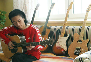 访谈中的他开始话并不多,点到为止,对自己的成绩也不怎么提,是个很内敛的人,据说这样性格的人才耐得住寂寞,静得下心来去阐述各种声音的表达。渐渐谈得投机了,我们有幸分享了他所制作的所有专辑,听到他最新创作的音乐小样,看到他熟练地弹着钢琴,并参观了他所收藏的各种样式的吉他。当他情不自禁坐在沙发上轻抚吉他浅浅低吟的时候我突然觉得,其实他也是有着强烈音乐梦想的年轻人,不仅仅是背后的创作,也许有一天,我们会看到这个有着偶像气质的创作高手走到台前对大家说“Hai~~~”!